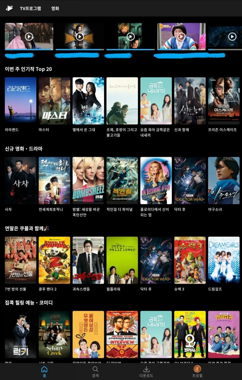 2. 오리지널·영화·스포츠 전체 라인업을 광고와 함께 0원으로 즐긴다.