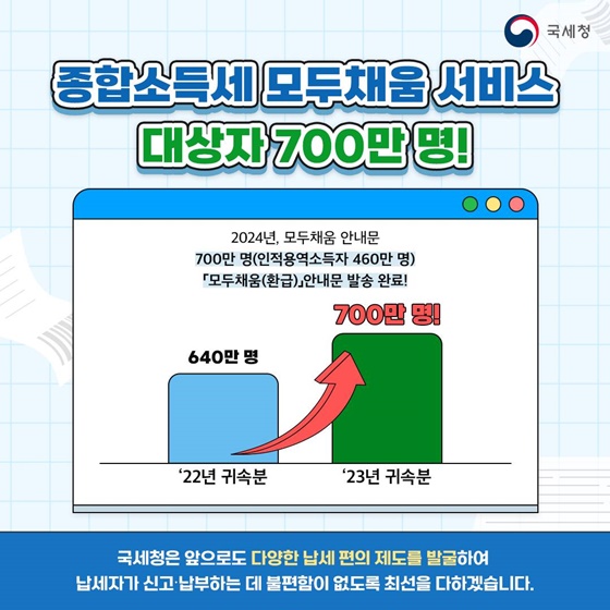 특히 부가가치세, 종합소득세 대상자 중 일부는 세금 환급 대상일 수 있으며, ‘모두채움 신고’를 통해 간편하게 확인하고 신청할 수 있습니다.