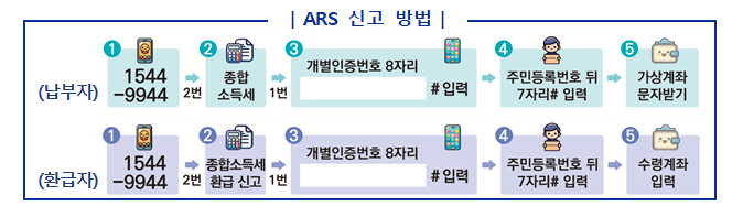 - 국세청 ARS 번호인 1544-9944로 전화합니다.