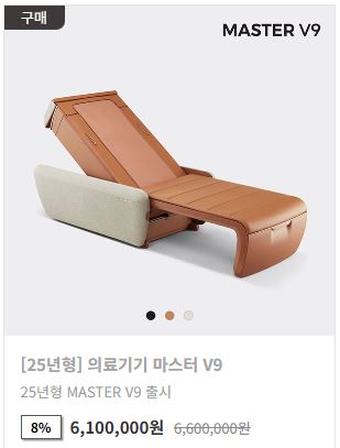 세라젬 마스터 V9의 공식 판매 가격은 6,600,000원이며,