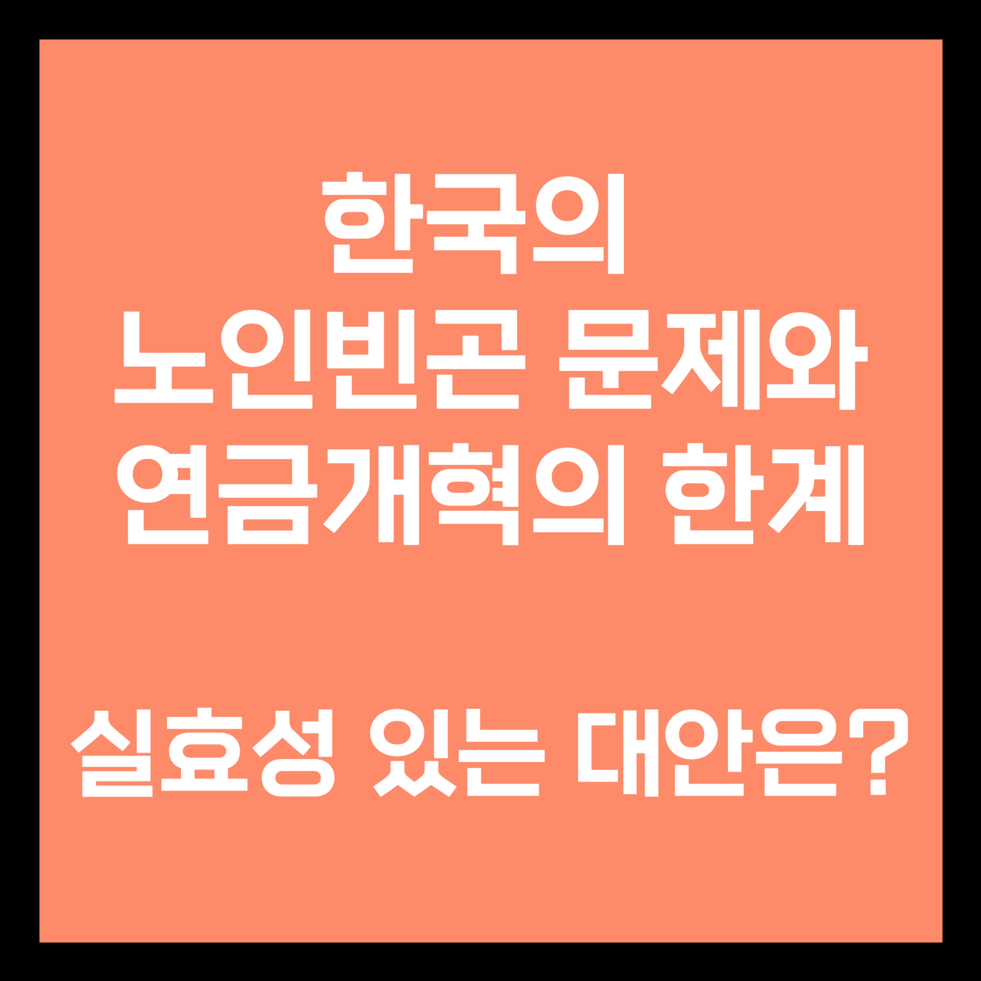 국민연금 개혁은 장기적인 관점에서 중요한 문제지만, 노인빈곤 문제를 해결하기 위해서는 더 즉각적이고 직접적인 대책이 필요하다.