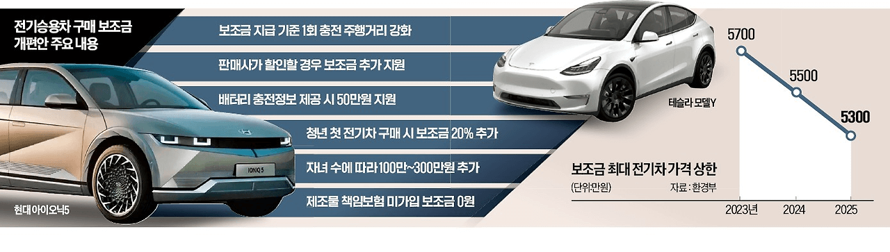 - 중·대형 전기차의 최대 보조금을 위한 주행거리 기준이 400km에서 440km로 상향.