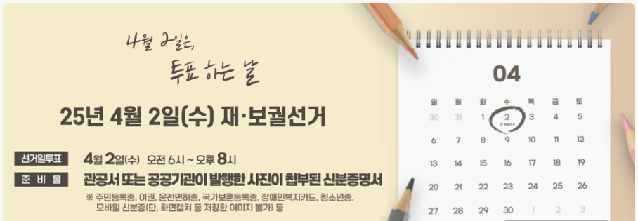 - 선거일 투표 : 2025. 4. 2(수)[06:00 ~ 20:00]